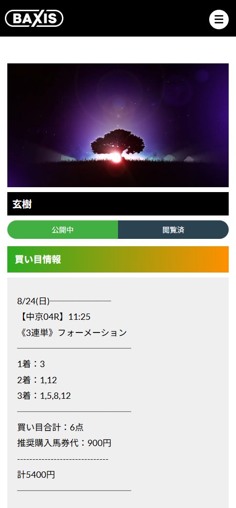 直近で玄樹を購入してとんでもない的中を貰ったのでそれでよければ貼っておきますヨ