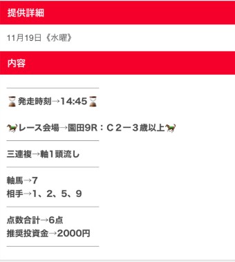11月11日(火)の地方無料予想では1万2800円的中!